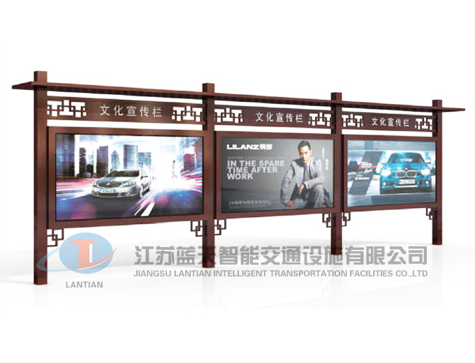 是一家生產宣傳欄,候車亭,公交站臺,閱報欄,指路牌,廣告垃圾箱,滾動換畫燈箱等系列產品廠家!產品多達上百種,亦可根據客戶的需求加工制作各種型號、規格的產品。目前已經成功的向市場推出裝備有太陽能的各類產品,緊跟國家倡導“節能低碳”的環保政策。